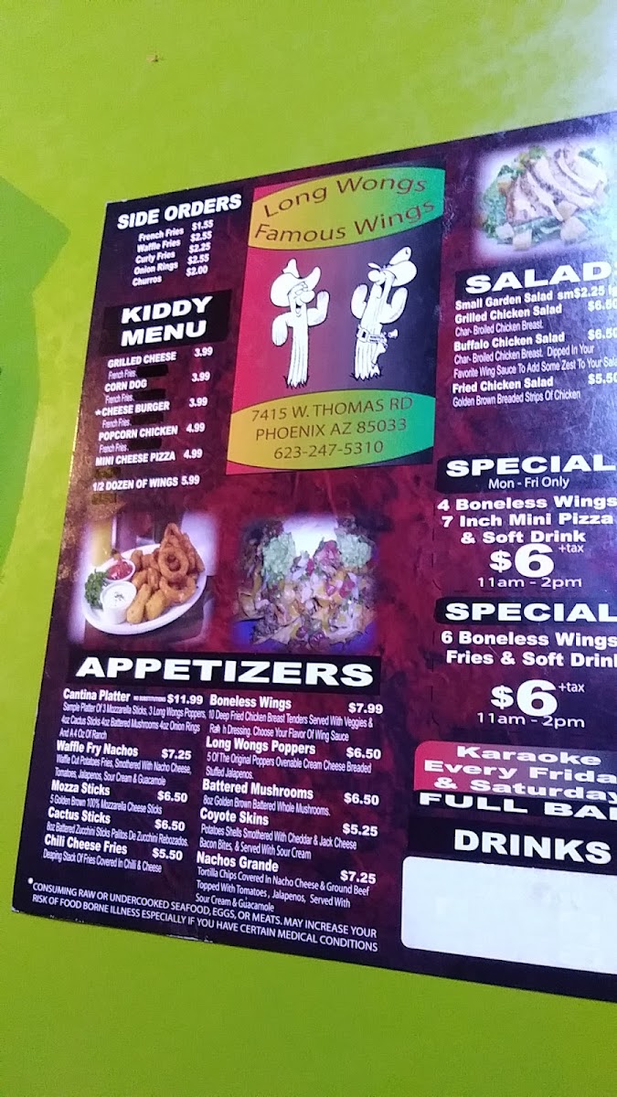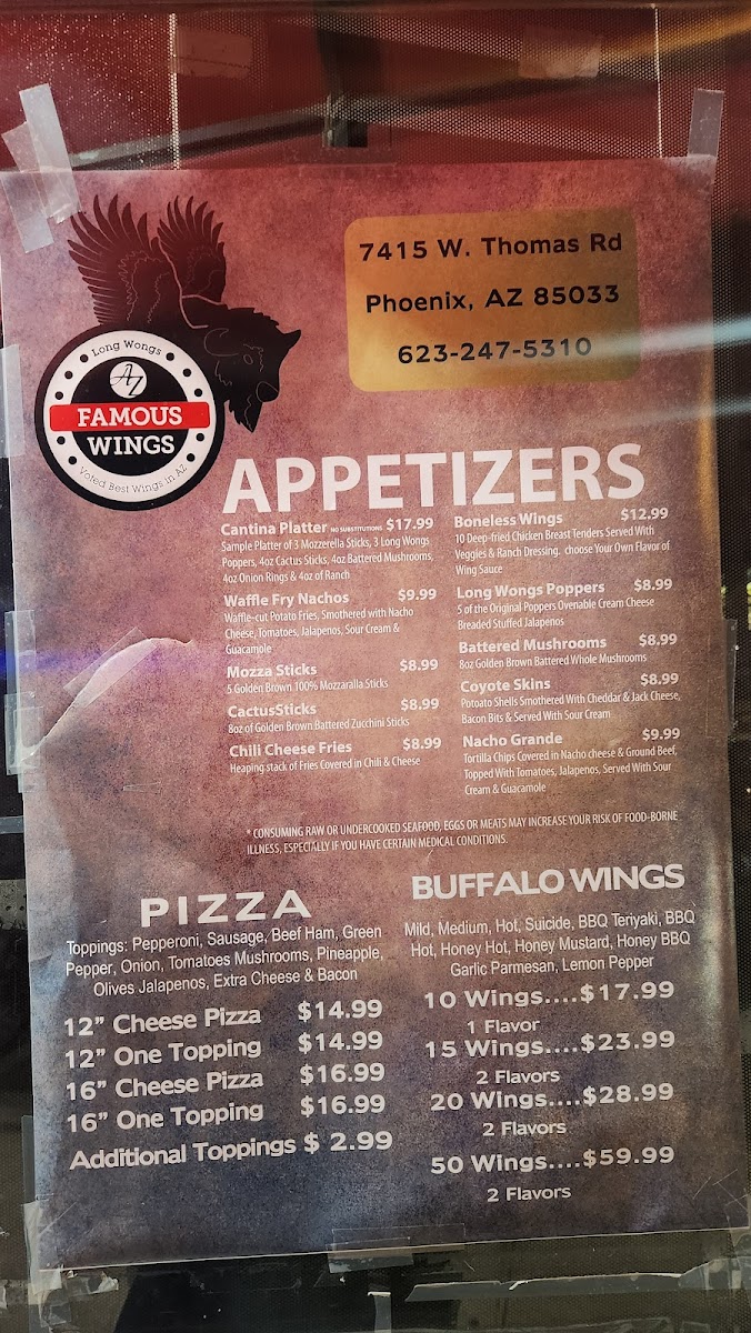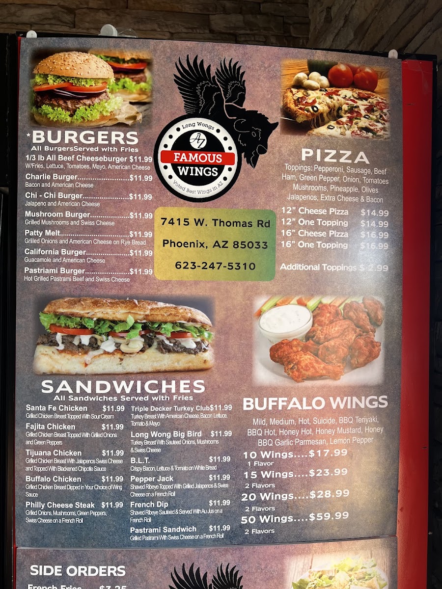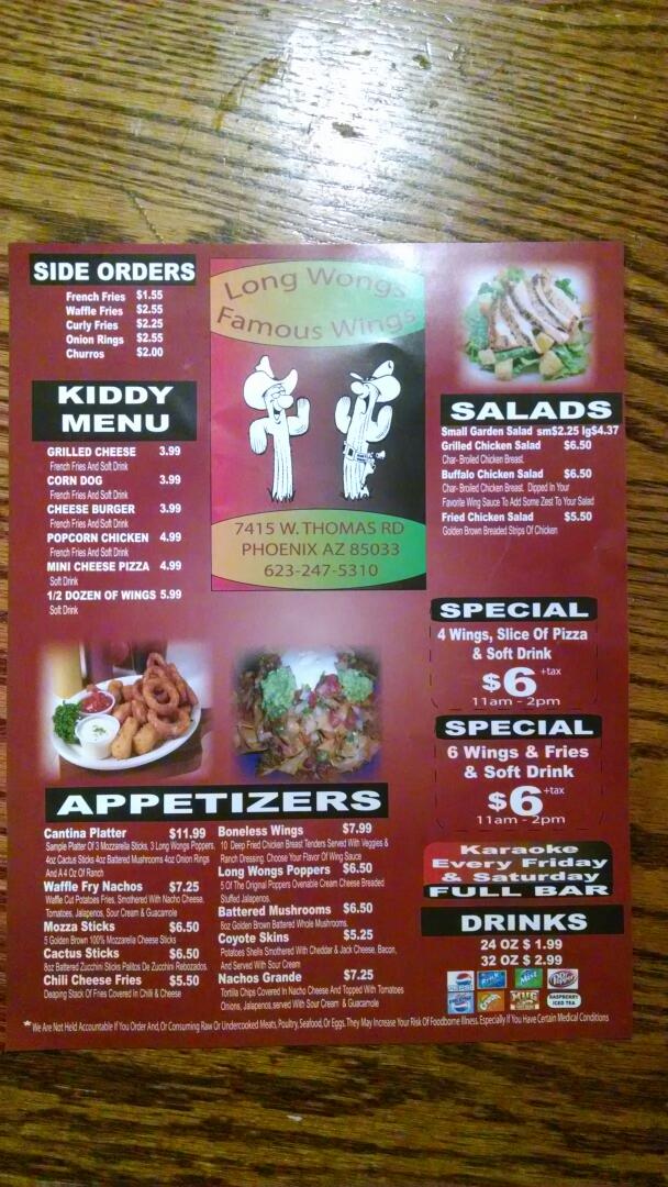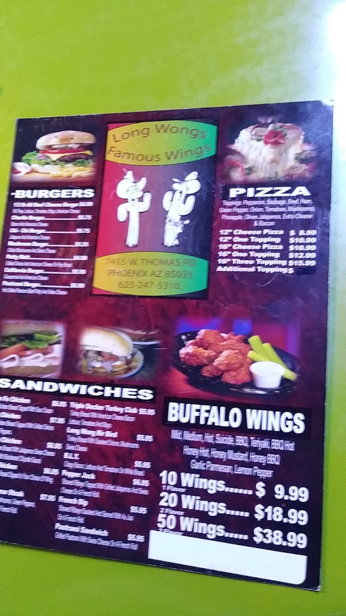 Long Wongs AZ Famous Wings Menu